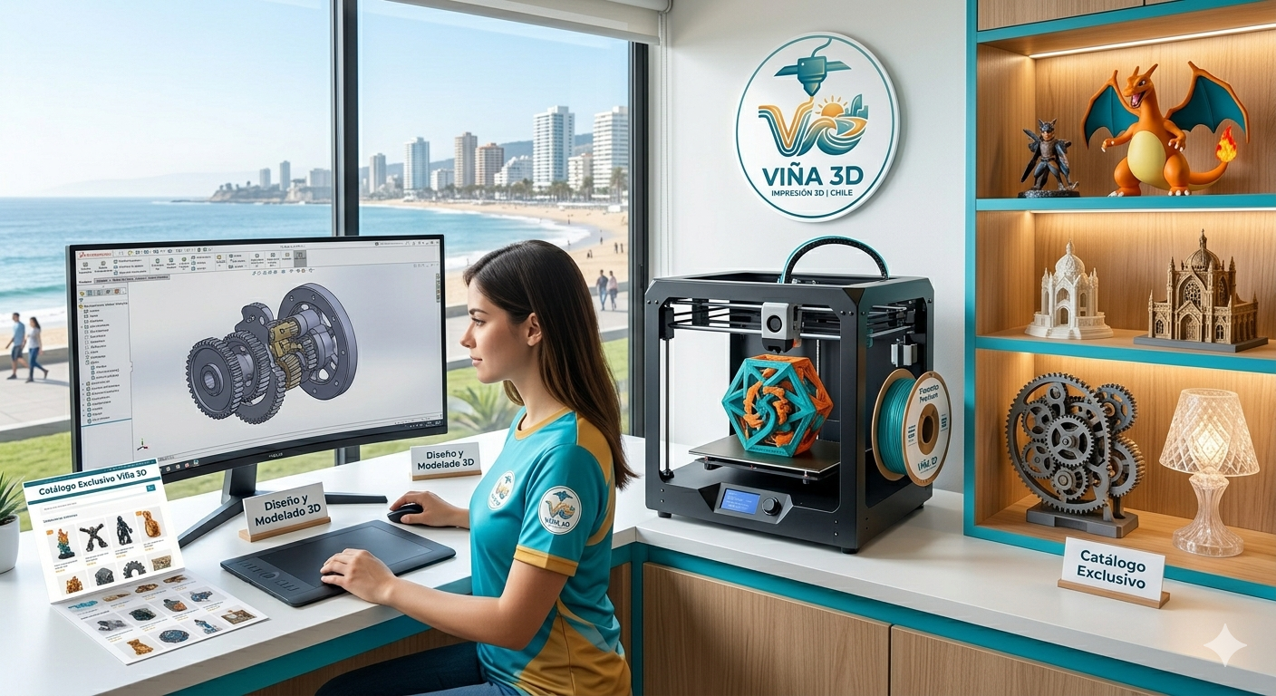 En Viña 3D somos mucho más que una tienda online; somos un taller creativo equipado con tecnología de impresión 3D listo para materializar cualquier proyecto que tengas en mente. Ya sea que busques el regalo perfecto, necesites fabricar una pieza específica o tengas una idea que quieras desarrollar desde cero, tenemos una solución para ti.